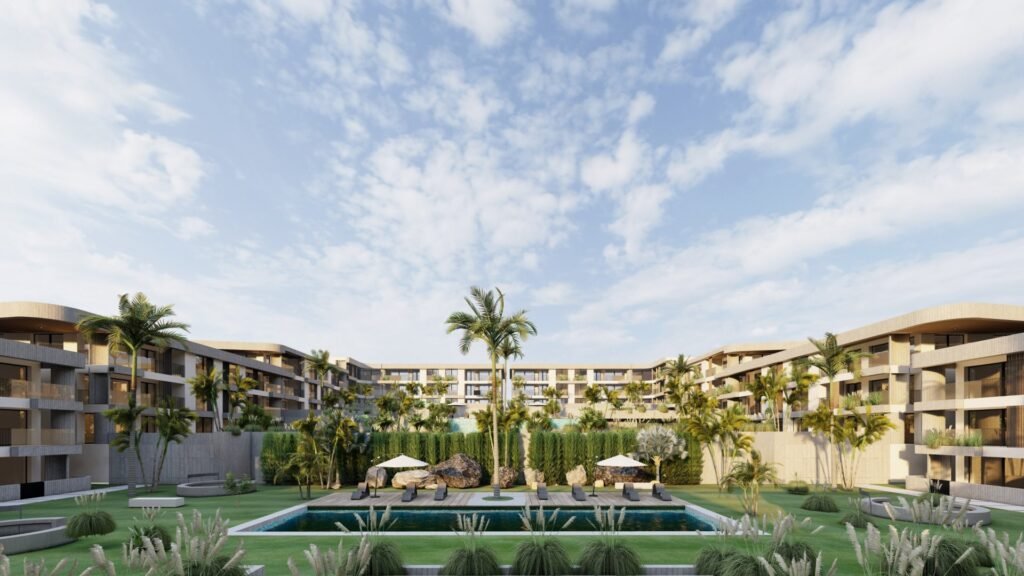 Plongez dans un cadre privilégié, entouré d’espaces verts, de piscines, et bénéficiez d’une vue captivante sur la mer.